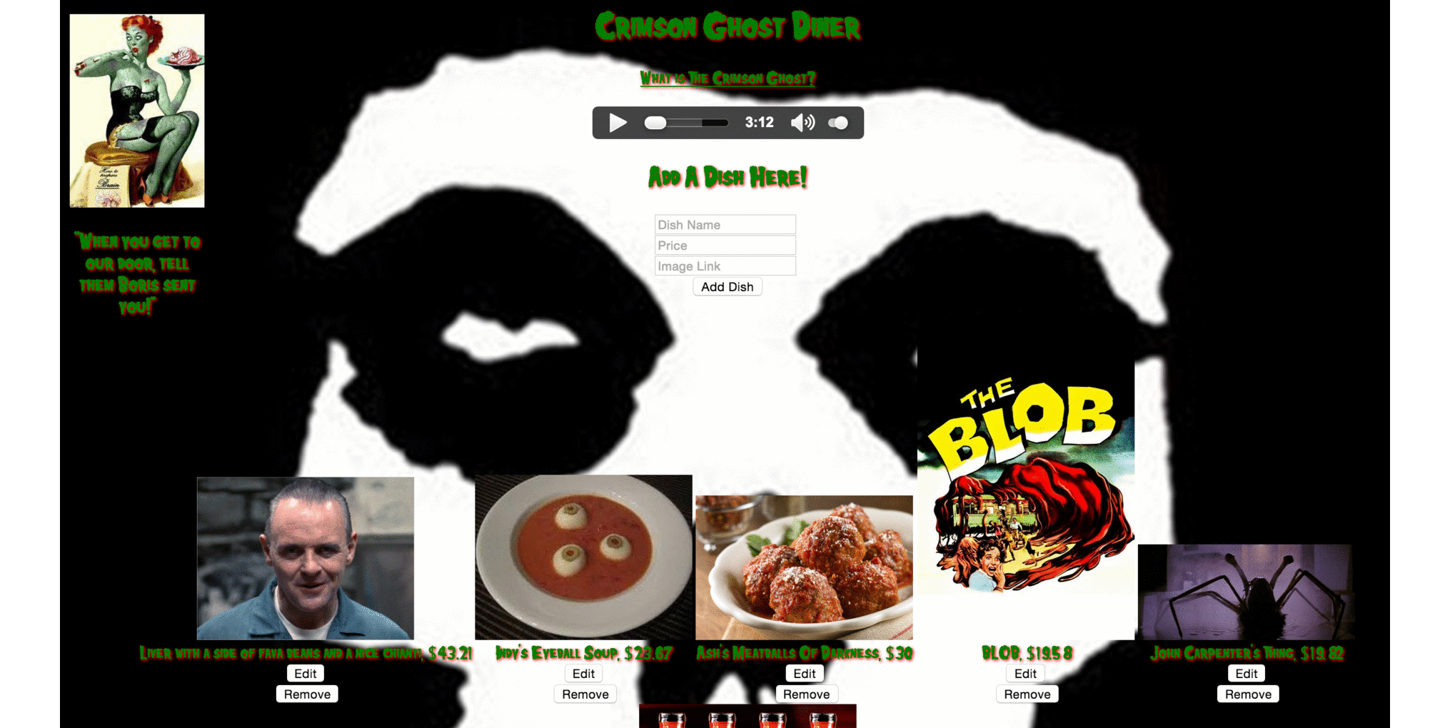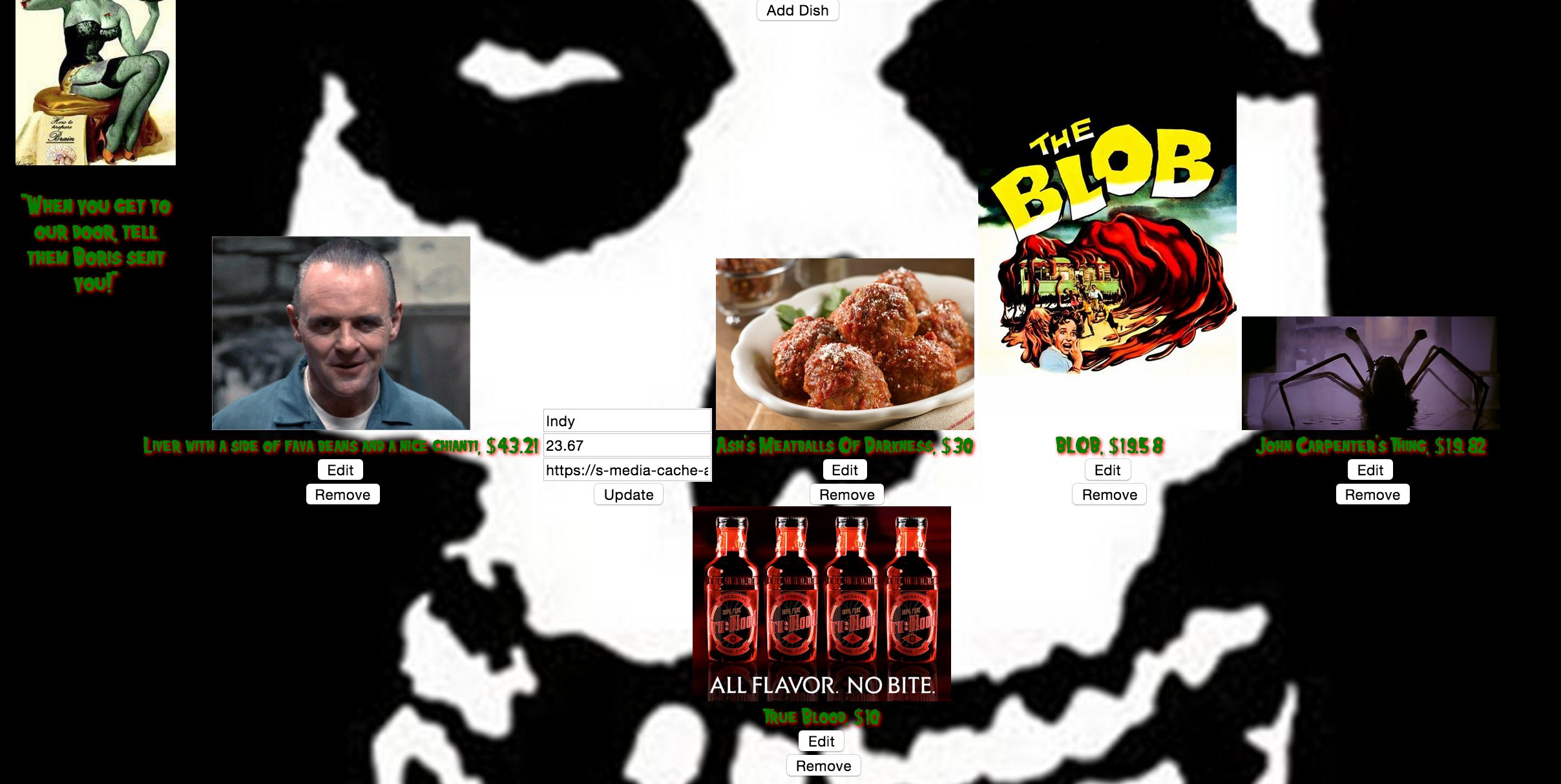 Manage your retro-campy-horror-punk/rockabilly-themed restaurant menu.
