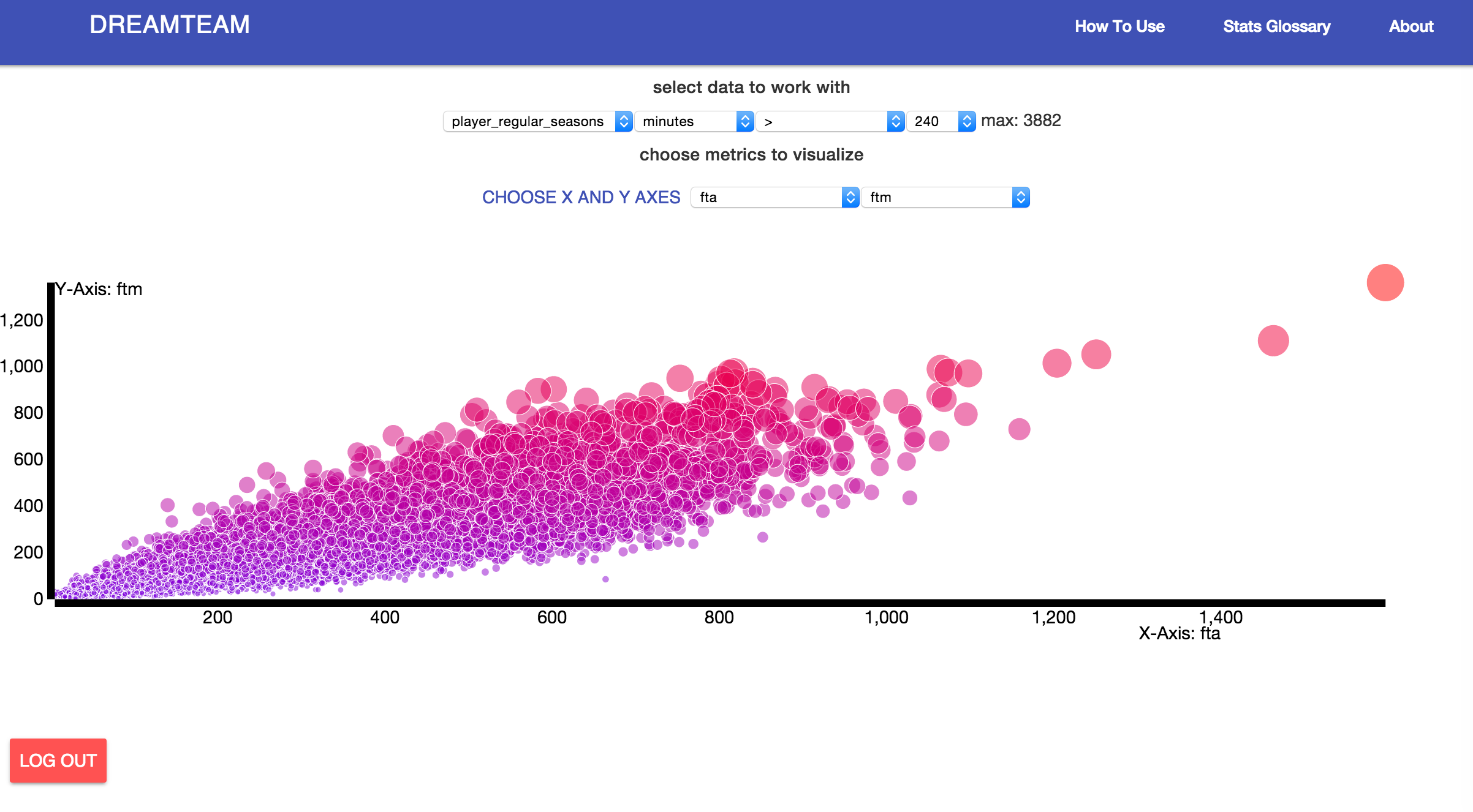 Gain basketball insight by visualizing statistical data from 1946-2009. (data set courtesy of databasebasketball.com).